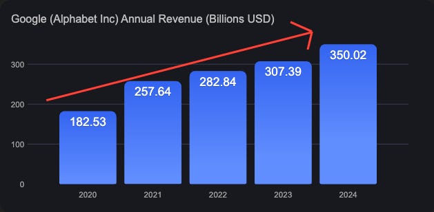 Revenue growth: Google’s revenue nearly doubled in 5 years.